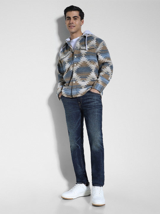 Stay warm without sacrificing style. The AE Hooded Shirt Jacket combines a relaxed shirt silhouette with a cozy fleece construction, featuring a bold Aztec-inspired pattern that sets it apart from the ordinary.